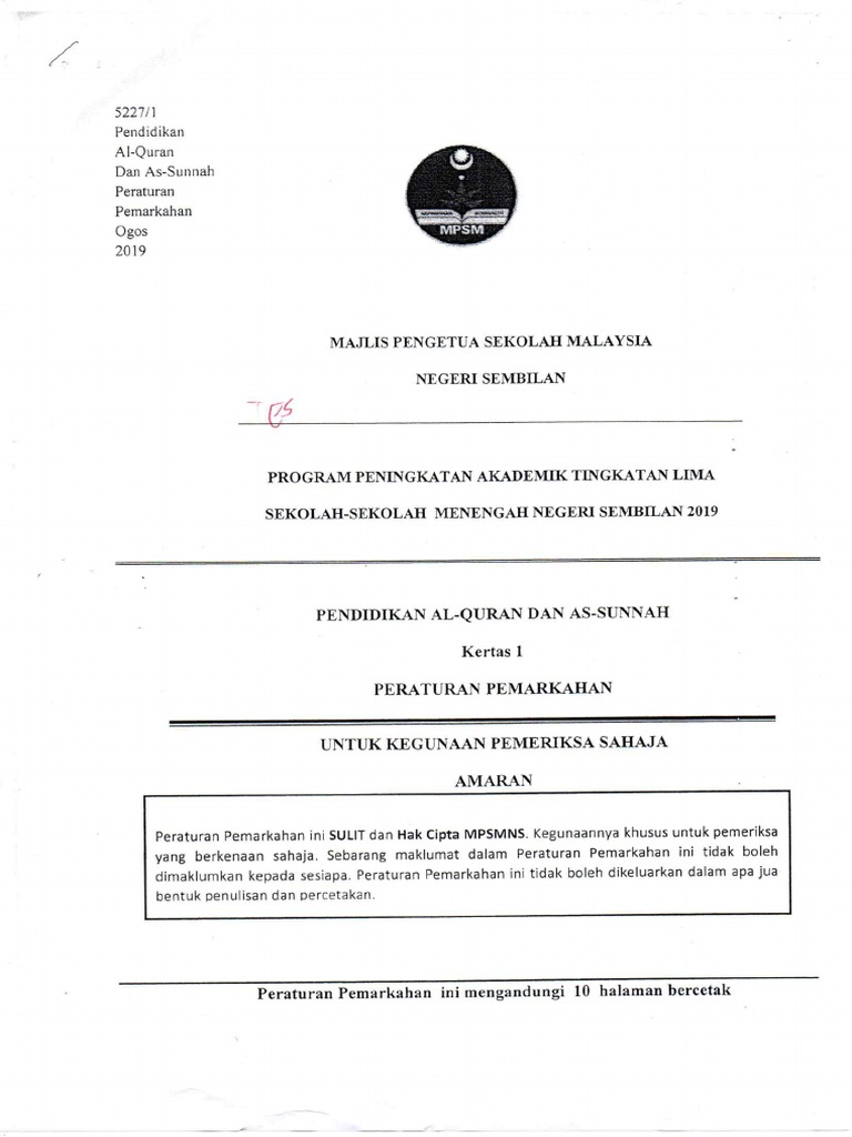 Skema Jawapan Soalan Percubaan Spm 2019 Negeri Sembilan